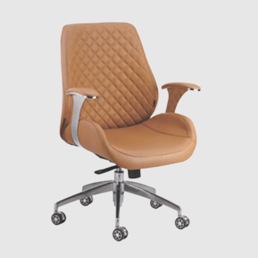 This stylish mid-back office chair is designed to deliver both comfort and contemporary elegance. Featuring a quilted backrest, the chair provides excellent support while adding a sophisticated touch to any office environment. The ergonomically shaped seat ensures comfort during extended periods of use, while the cushioned padding enhances the overall sitting experience. Equipped with a height adjustment mechanism and a sturdy swivel base with smooth-rolling casters, the chair allows easy mobility and flexibility. Its compact yet supportive design makes it perfect for both professional offices and home workspaces.