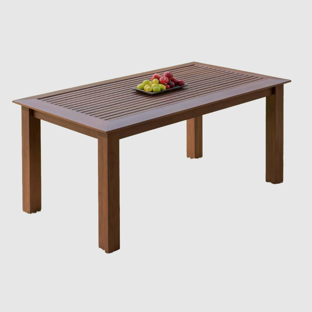 The unique slatted tabletop not only adds a contemporary look but also provides better airflow and easy maintenance, making it ideal for both indoor and semi-outdoor use. The solid wooden legs offer excellent stability and support, ensuring a sturdy structure for everyday use.
