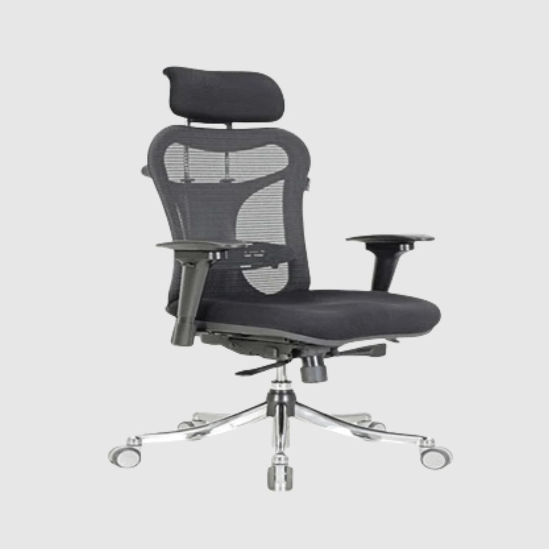 This premium ergonomic office chair is designed to provide maximum comfort, support, and flexibility for modern office and home workspaces. The chair features a breathable mesh backrest that promotes airflow and keeps you cool during long hours of sitting. The adjustable headrest provides proper neck and head support, helping reduce strain and improve posture.