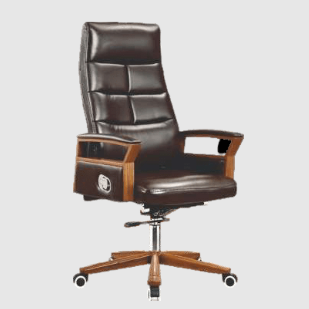 Built with a strong metal base and smooth rolling caster wheels, this chair ensures easy mobility and stability across different floor surfaces. Whether placed in a corporate office, conference room, or home workspace, this executive chair offers both style and productivity.