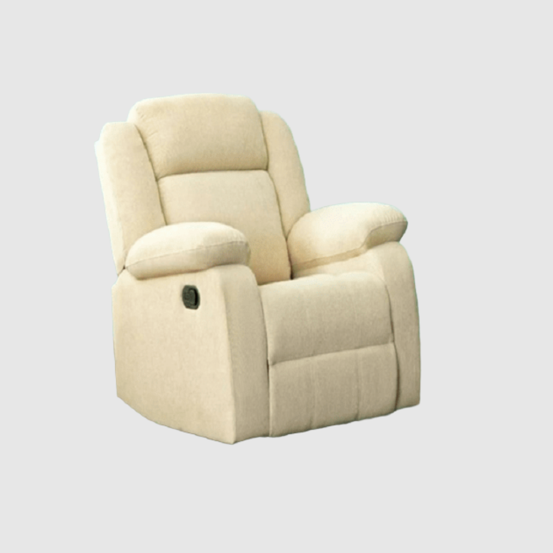 Add a touch of comfort and sophistication to your space with this cream-colored recliner chair. Designed with plush cushioning and a supportive backrest, it offers an exceptional seating experience for everyday use. The easy-to-operate reclining mechanism allows you to lean back and extend the footrest effortlessly, making it ideal for relaxation after a long day. Upholstered in soft, durable fabric, this recliner blends seamlessly with modern and classic interiors alike. Its sturdy build ensures long-lasting durability while maintaining maximum comfort.