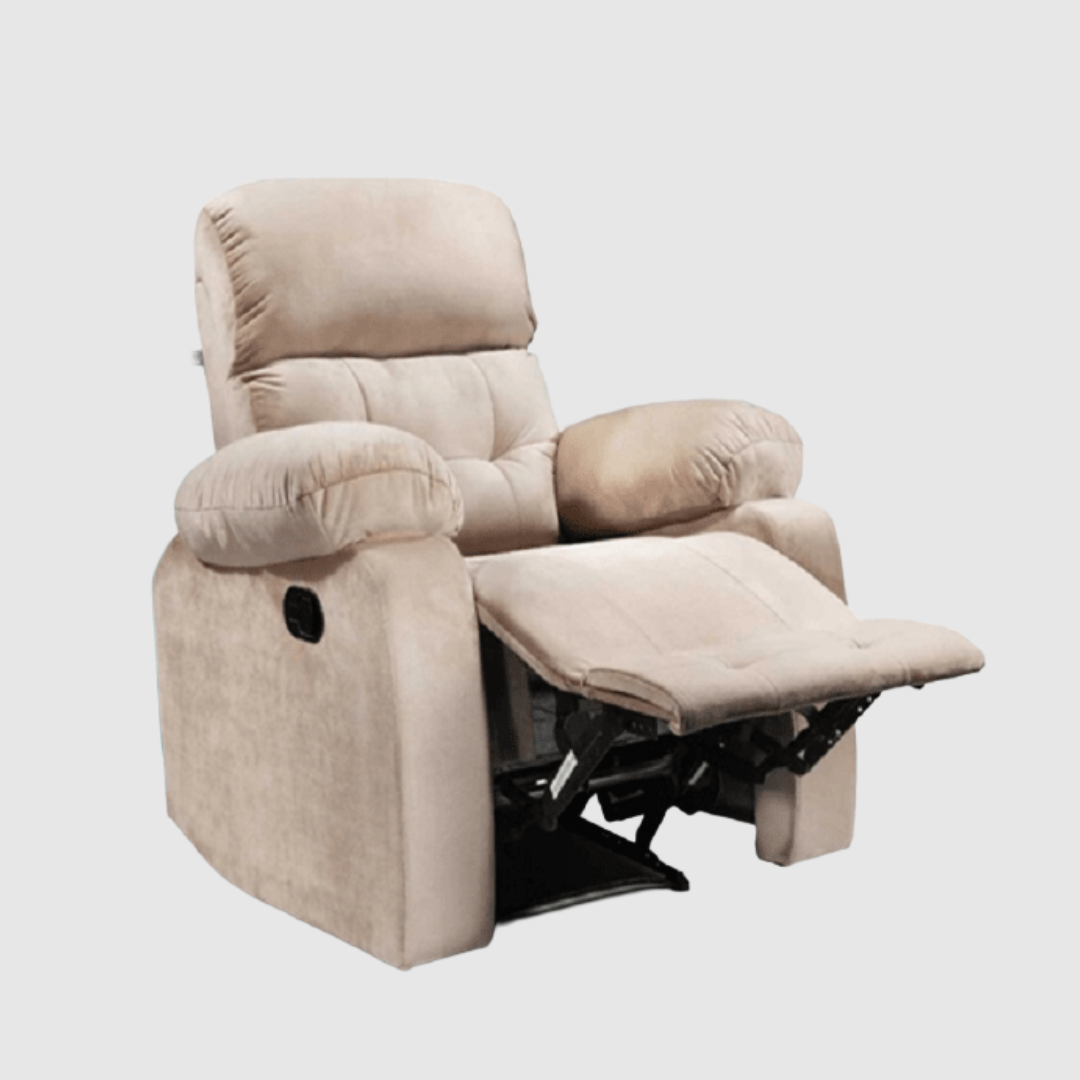 Upgrade your relaxation experience with this elegant beige recliner chair, designed for superior comfort and support. Featuring generously padded cushions, soft upholstery, and a sturdy frame, this recliner offers a perfect balance of style and functionality. The easy-to-use reclining mechanism allows you to stretch out effortlessly, while the extended footrest provides full-body relaxation. Its neutral beige tone blends seamlessly with any interior décor, making it an ideal choice for modern living spaces, lounges, or personal relaxation corners.