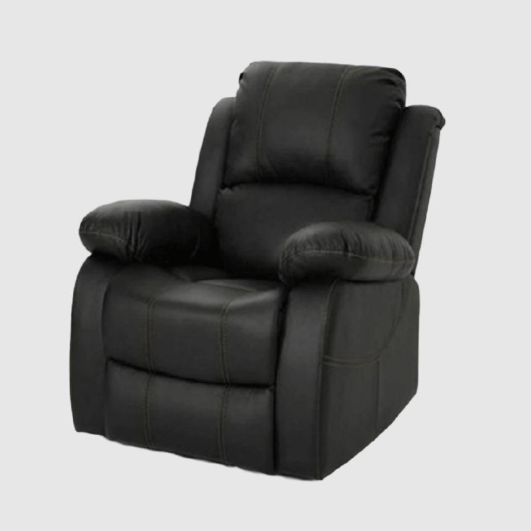Experience superior comfort with this stylish black recliner chair, crafted to provide ergonomic support and luxurious relaxation. Featuring high-density foam cushioning, padded armrests, and a supportive backrest, this recliner ensures maximum comfort for extended seating. The smooth reclining mechanism allows you to effortlessly adjust your position, making it ideal for watching TV, reading, or simply unwinding. Upholstered in durable, easy-to-maintain material, this recliner combines modern aesthetics with long-lasting performance, making it a perfect addition to any living room or lounge space.